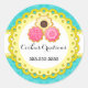 © 2014 Socialite Designs. Elegant cookie bakery sticker design incorporating a turquoise damask pattern background, yellow scalloped border banner for your text, and sugar cookies inside a circle. All design elements can be resized, moved, rotated or deleted to suit your requirements.