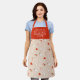 This fun holiday baking apron features a pattern of iced Christmas cookies - a Santa hat, snowman, Christmas tree, an angel, mittens, and a candy cane. The text reads, "COOKIE BAKING CREW," but it can be customized to say anything you'd like. :) The red is kind of an orange - red colour, and the background is a beige.