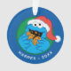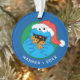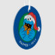 Celebrate the holidays the cookie way! This festive ceramic ornament features a close-up of everyone's favorite blue monster, Cookie Monster, wearing a Santa hat and happily munching on cookies. Set against a deep blue and green background, this design is perfect for capturing a sweet moment. The ornament is fully customizable to include any name and the year making it an ideal personalized Christmas gift, yearly keepsake, or stocking stuffer for any Sesame Street or cookie fan!