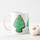 Photographie d'un biscuit artisanal décoré de pain d'épices de Noël répété dans une tasse.