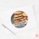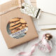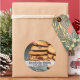 Boulangerie auto-collant modèle sur mesure. Autocollant rond de trois pouces (ou choisir la plus petite taille) avec l'image d'une puce chocolatée maison empilée sur une plaque en verre. Ajoutez un nom commercial et un numéro de téléphone ou une adresse en utilisant les deux lignes d'exemple, le texte modèle en bleu marine.