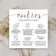 Modern Cookies Care Card with elegant script font and care icons. This minimal black and white cookies care and storage instructions cards includes the most important biscuits care information as well as a thank you note on the back with space for your logo and business details. The perfect addition to your cookies bakery packaging design.