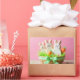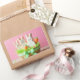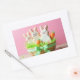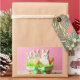 Quatre biscuits de lapin de Pâques et deux biscuits de carottes dans un panier avec herbe verte, arrière - plan vert et arc à damiers vert.