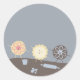 Three frosted cookies walk and play on this bakery or baking gift tag sticker, "from my kitchen", "from the kitchen of" tag for your homemade sweets or breads; baking utensils of rolling pin, measuring cup and spoons on blue and brown background. Customize the text to make it personally yours, from your kitchen!