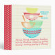 Stacked cooking or baking mixing bowls in a pretty colour scheme on this personalized cookbook recipe binder, perfect for collecting or sharing your family favourites or as gifts for weddings or holidays.