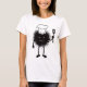 Halloween cooking design with a hairy evil bug - chef. The evil character who wears a chef's hat is holding a spatula with and evil grin showing its sharp teeth. This fun illustration has an intense orange textured background.