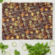 Fun implements and tools of the kitchen are collaged on a handy kitchen towel for a modern and practical pop of whimsy in your kitchen. Spatula, whisk, spoons, forks and knives all combine for a playful bit of muted retro colour in shades of sage green, terra cotta, gold, umber and brown.