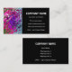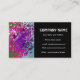 A stylish business card with an abstract pattern of swirls in shades of blue, bright pink and white, with white lettering on a black background. Ready for you to customize with your own details.