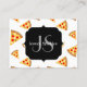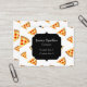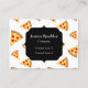 Personalize and customize elegant business card with your initial name and business information. Cool and fun pizza slices pattern on white - unique card for foodies, restaurateurs, pizzerias.. Juicy vector made pizza with crunchy crust, cheese, salami, champignon mushrooms, olives and a sprinkle of oregano.