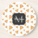 Personalize table decor coaster with your initial and name. Cool and fun pizza slices pattern on dark grey. Juicy vector made pizza with crunchy crust, cheese, salami, champignon mushrooms, olives and a sprinkle of oregano.