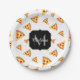 Cool and fun pizza slices pattern Monogram white Paper Plate