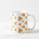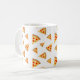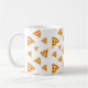 Cool and fun pizza slices pattern on white coffee mug, Kitchen and Dining Drinkware gift for anyone. Juicy vector made pizza with crunchy crust, cheese, salami, champignon mushrooms, olives and a sprinkle of oregano.