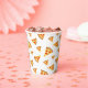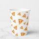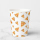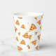 Tableware Party Supplies Paper Cups for celebration, birthday, pizza party.. Cool and fun pizza slices pattern on white. Juicy vector made pizza with crunchy crust, cheese, salami, champignon mushrooms, olives and a sprinkle of oregano.
