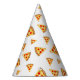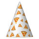 Party Supply Paper Party Hats Cool and fun pizza slices pattern on white. Juicy vector made pizza with crunchy crust, cheese, salami, champignon mushrooms, olives and a sprinkle of oregano.