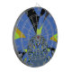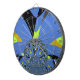 Blue: The dominant colour of the background, bright and saturated, establishes a vibrant backdrop that enhances the overall composition.