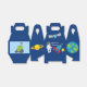 A cool outer space astronaut themed party favour box for a kid's birthday. Features an awesome child astronaut next to a rocket ship in the galaxy. The sides are decorated with planets, spaceships, and the planet Earth. Customize with your thank you message for a galaxy themed party favour package.