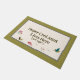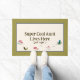Fun customizable door mat features "Super cool Aunt lives here" and "just sayin' ..." text with simple floral elements and framed background. Personalize for your favourite aunt, friend or other special person.