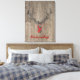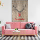 Cool awesome funny trendy deer sketch with red glasses and red polka dots scarf, old wood light brown, grey colours texture effects background. Personalise your name or favourite words,or delete the name for image only, image print.