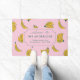 This design features a banana seamless pattern in yellow and hand drawn strokes over a pink background.