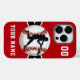 Cool, Baseball Phone Case with Name and Number. You can CHANGE the Red Background and White Text or Delete the Text or Any Design Layer. Click "Personalize" Button. Type in his Name and Jersey Number or Delete it. CLICK "EDIT using DESIGN TOOL" to CHANGE the RED and WHITE Background and Text Colour or to Delete any of the Design Layers.