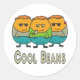 A fun design showing three cool beans facing the viewer in various states of bean cool.