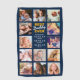 Personalized fathers day golf towel featuring a blue background that can be changed to any colour, 13 family photos, the words "best daddy ever", your childrens names, and their birthdays.