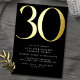 Modern-style 30th birthday invitations with a large heading "30" in real metallic foil. Your event details are printed below in matte white font. Unisex design with gold accents on a contrasting black background. (Background colours can be changed by using the design tool. You may also change the type of metallic foil.)