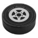 Cool black car tire and rim custom ice hockey puck design. Novelty Birthday gift idea for athletic friends and family. Add your own personalized name, date or quote. Automotive race car theme.