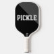 This fun pickleball design features a vibrant colour block in the right upper corner against a black background. The optional white bold sporty "PICKLE" text can be personalized.