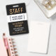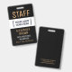 This cool staff ID badge has a modern design for identification cards, featuring a customizable text and the company logo on front and ( on the back) a white info script, all on a black background, for increased visibility. It is simple but versatile and can be adapted to sports concerts or other kind of events. Available in colour variations.