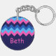 Cool bleu rose Chevron Monogram Porte - clé