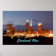 The Terminal Tower in Cleveland, Ohio has lights of many colours through the year, for many occasions- here is the city skyline of Cleveland, Ohio with the Terminal Tower lights in blue. The photo is caught at evening, just as the lights come on in Downtown Cleveland, Ohio.