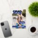 Cool 2 in 1 magazine cover graduation invitation and announcement featuring a photo of your son on the cover, along with six more photos on the back. The graduation party invitation features GRAD as the magazine title along with his name, and party details, and the year as an overlay atop his photo with gold foil details. On the back, add more photos and perhaps an inspiring quote.