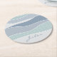 Cool Blue Green Curved Stripes Abstract Waves Name Round Paper Coaster