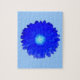 This awesome puzzle features a photograph of a marigold flower that has been manipulated to create a beautiful dark blue flower with a bright blue centre. The flower is on a pale blue background.