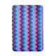 A medium size, bath mat featuring a pretty, colourful pattern design of blue and pink chevrons.