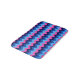 A small size, bath mat featuring a pretty, colourful pattern design of blue and pink chevrons.