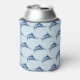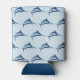 Cool navy blue swordfish pattern on light blue monogrammed can cooler.