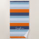 Cool blues and orange stripes custom name beach towel