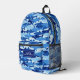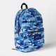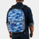 Super fun backpack featuring a blue camouflage shark pattern and your custom name. Add an extra bonus line of text - phone number, team name, saying, etc. - or delete. Roomy enough for books, computer, sports gear and more - or use as a travel or sleepover bag too. Cool and colourful, yet very functional - win, win.