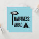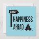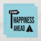 Simple Text graphic design showing a little tent a camp sign and a Text saying: Happiness ahead.