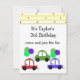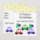 Brightly coloured cars and balloons make a fun invitation to your childs birthday party. Customize with all of your information as desired.