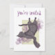 Funny grunge cartoon cats birthday invitations. Black cat on a paint splattered purple and olive green background. Cool fonts ready for you to personalize. Perfect for kids party invites but would work well for adults celebrations too.