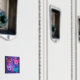 4 different illustrations of some cool cat faces in space. One cat wears some cool shades while the others have their eyes closed and look relaxed, one wears a bow tie. These cats are set on a space background with bright colours and lots of shining twinkling stars in the background.