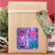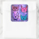 4 different illustrations of some cool cat faces in space. One cat wears some cool shades while the others have their eyes closed and look relaxed, one wears a bow tie. These cats are set on a space background with bright colours and lots of shining twinkling stars in the background.