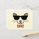 Illustration of a cat, pink nose and ears, wearing a pair of super cool sunglasses and a cute, rainbow coloured bowtie! Add background colour of your choice, this design works well on most light colour backgrounds.