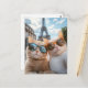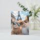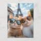Two stylish cats pose in front of the Eiffel Tower, rocking sunglasses and capturing the ultimate travel selfie on a sunny day in Paris.
