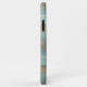 Classy, fun, contemporary mocha brown, beige, teal blue-green, and grey striped watercolor pattern design on faux leather texture background. Room for customization or personalization with a name, monogram, or initials of your choice. A stylish, original, and cool cover for the savvy, art-loving hip trend who wants to protect their phone from dust, dirt, and wear and tear. Available on a variety of decorative, fashionable, artistic, trending, modern, and cool iPhone 6,7 8, X, XR, 11, 12, 13 Mini, 14, 15 Plus, Max cellphone cases. Show off your style, look fashionable, and feel stylish with a unique design on a mobile device accessory of your choice.