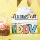 Fun cute colourful block letter Happy Birthday text surrounded by colourful musical instruments design is perfect for music lovers and guitar players and drummers and sax players celebrating a birthday.