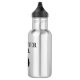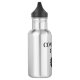Cool funny computer geek theme water bottle designed with a silver metallic looking digitally printed graphic that looks like there's a computer start button on the bottle and the words Computer Geek.